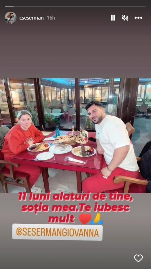 „11 luni alături de tine, soția mea. Te iubesc mult”, a scris Sese în dreptul fotografiei în care apare alături de Giovana.