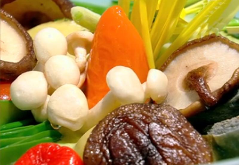 Ceapa și usturoiul verde se taie în bastonașe aproximativ de mărimea feliilor de cartofi. La fel și prazul, însă bastonașele de praz se mai taie în jumătăți, pe lungime. Ciupercile se șterg bine cu prosoape de hârtie umezite cu apă și se feliază mai grosier. Varza nouă se taie în franjuri mari.