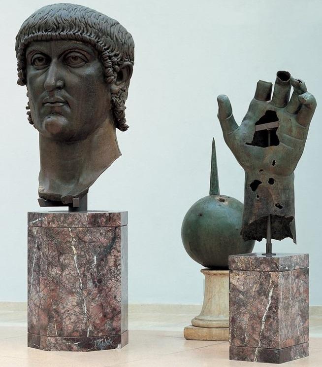 Din statuie, Muzeele Capitoline de la Roma nu deţin decât capul, mâna stângă (150 de centimetri înălţime) şi un glob, simbol imperial.