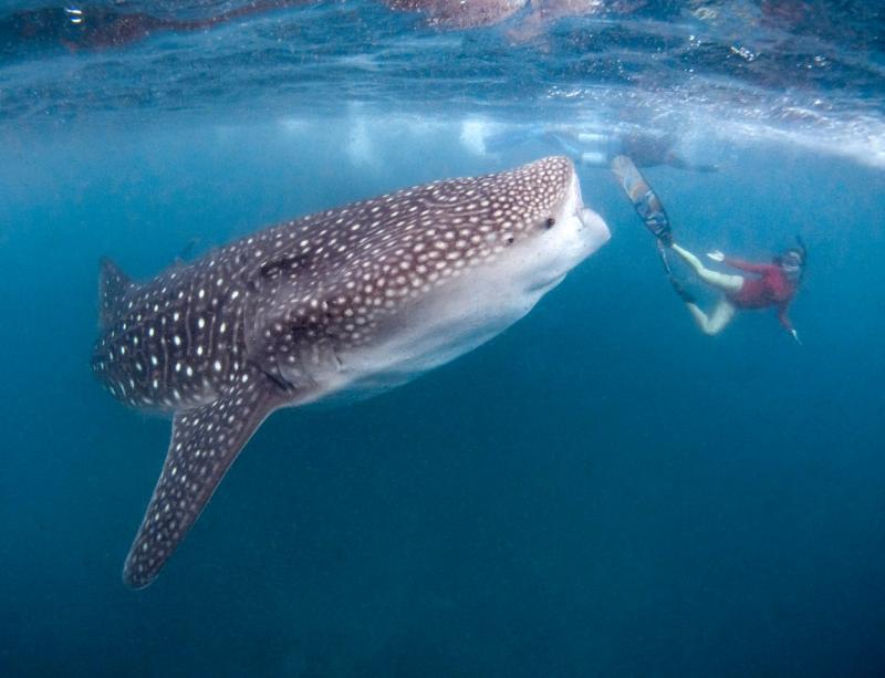 Cei doi aventurieri nu au fost în pericol în timpul scufundării, pentru că acești rechini pelerini nu sunt agresivi cu oamenii, deși în unele fotografii pare că rechinul îi poate înghiți cu totul pe cei doi.