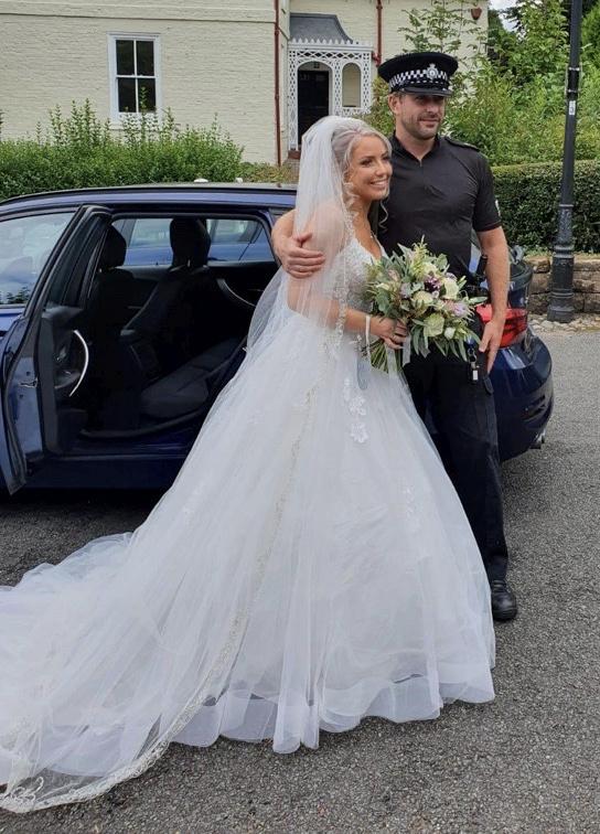 "Mireasa arăta senzațional, soarele a strălucit, am întârziat foarte puțin, aproape insesizabil. Sper ca acest cuplu să aibă o viață frumoasă și lungă împreună", a spus inspectorul Matt Geddes, cel care i-a dat o mână de ajutor miresei, ducând-o cu mașina de poliție la nuntă.