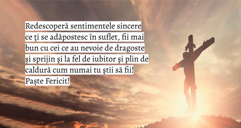 - Să ai parte de multă căldură în suflet și în cămin, bucurie în inimă, sănătate și dorință de muncă. Hristos a Înviat! Paște fericit alături de cei dragi!