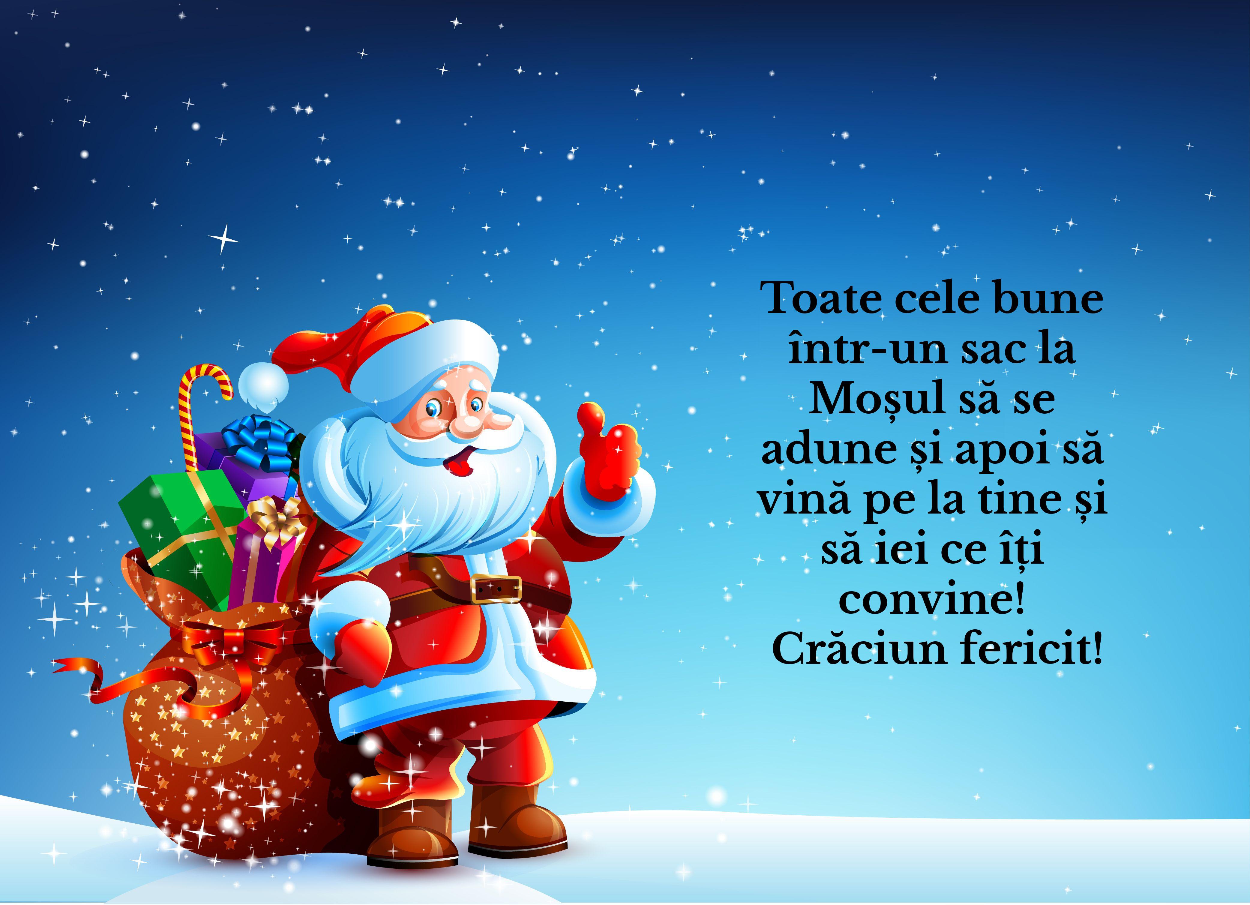 - Toate cele bune într-un sac la Moșul să se adune și apoi să vină pe la tine și să iei ce îți convine! Crăciun fericit!