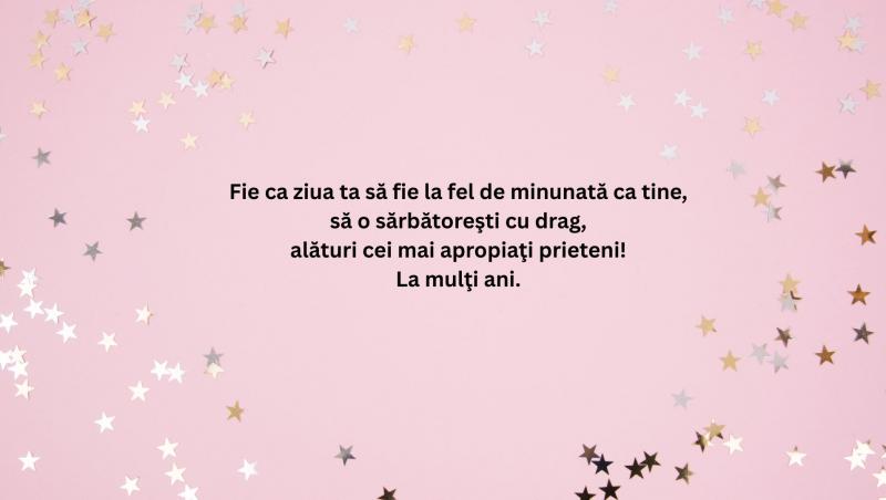 - La mulți ani! Să ai parte de o zi minunată plină de surprize frumoase și de momente speciale!