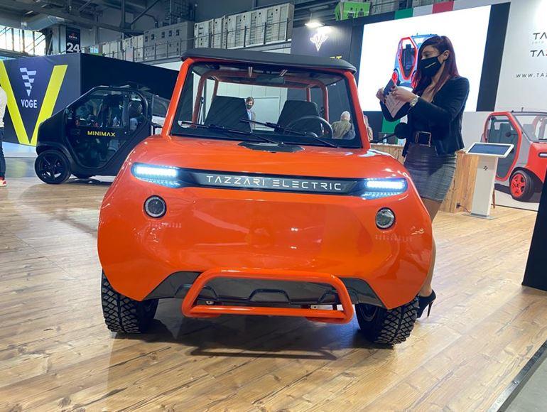La standul TAZZARI EV, vizitatorii pot admira cele mai noi vehicule electrice ale producătorului, printre care ZERO 4 OPENSKY și ZERO 4 BUGGY, un minicar cu 4 locuri modern, cu design în stil Buggy. Disponibil în mărime Standard și Big, Zero 4 Buggy are în dotare baterii cu litiu de ultimă generație, oferă accelerație perfectă și manevrabilitate sportivă, atingând până la 90 km/h. ZERO 4 OPENSKY, disponibil cu variantele Sport, Tender și Limited, este promovat drept partenerul ideal pentru naveta zilnică urbană sau în afara orașului, o alternativă economică și prietenoasă cu mediul, preferabilă soluțiilor convenționale de deplasare.