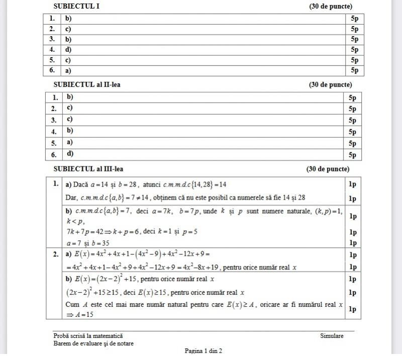 VEZI GALERIE FOTO PENTRU BAREM SIMULARE EVALUARE NAȚIONALĂ 2022 - MATEMATICĂ