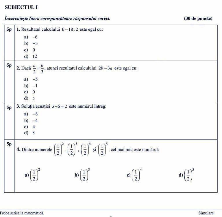 Subiectele de la Simularea examenului de Evaluare Națională de la matematică pot fi consultate mai jos. Vezi și Baremul de corectare a simulării la matematică