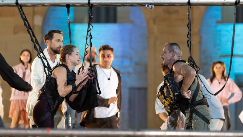 „Împreună am râs, am lăcrimat, ne-am adus aminte de lucruri, dar cel mai important este că am rezistat. Mai avem puțin și aflăm cine pleacă acasă cu premiul, dar mai ales cu titlul! Proba de astăzi ne arată câteva calități ale cuplului vostru. În primul rând e vorba de ambiție: trebuie să strângem din pumni, ca în viață, să trecem prin unele, prin altele. Să ne privim în ochi când ne e greu și, mai ales, să rezistăm! Dragii mei, veți fi poziționați la orizontală acolo sus, față în față. Pe toată durata probei veți căra, ca în viață, niște bagaje. Veți căra amintiri, dorințe, visuri, speranțe, mici probleme ale vieții. Le veți căra pe tot parcursul probei. Noi le-am transformat într-o metaforă și le-am numit cele patru anotimpuri. După fiecare patru anotimpuri trecem într-un alt an de relație și se adaugă alte greutăți. În mod simbolic, greutățile sunt niște lingouri de aur, dar să nu vă gândiți la ele doar ca la niște bani, ci ca la adevăratele greutăți pe care le cărați cu voi până la adânci bătrâneți. Câștigă cuplul care rezistă cel mai mult acolo sus. Este probă de cuplu, ne bazăm pe amândoi. Dacă unul scapă toarta bagajului, proba se încheie pentru amândoi. Astăzi este marea finală, astăzi aflăm cine pleacă acasă cu marele premiu”, a anunțat Dani Oțil, spre marea surprindere a tuturor finaliștilor de la Power Couple România sezonul 3.
