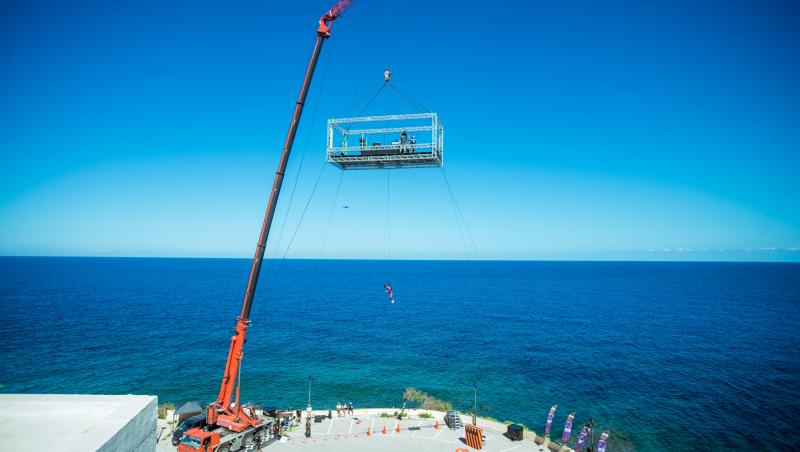 „Va fi o probă de perspicacitate și îndemânare la înălțime”. Imediat ce va închide conexiunea, va continua să le povestească partenelor: „Cădere liberă, titlul este despre voi fetele, nu despre băieți. Băieții vor sta cu mine, asigurați pe platformă, iar pe voi vă spânzurăm sub. Avem câteva mini jocuri cu băieții.”
