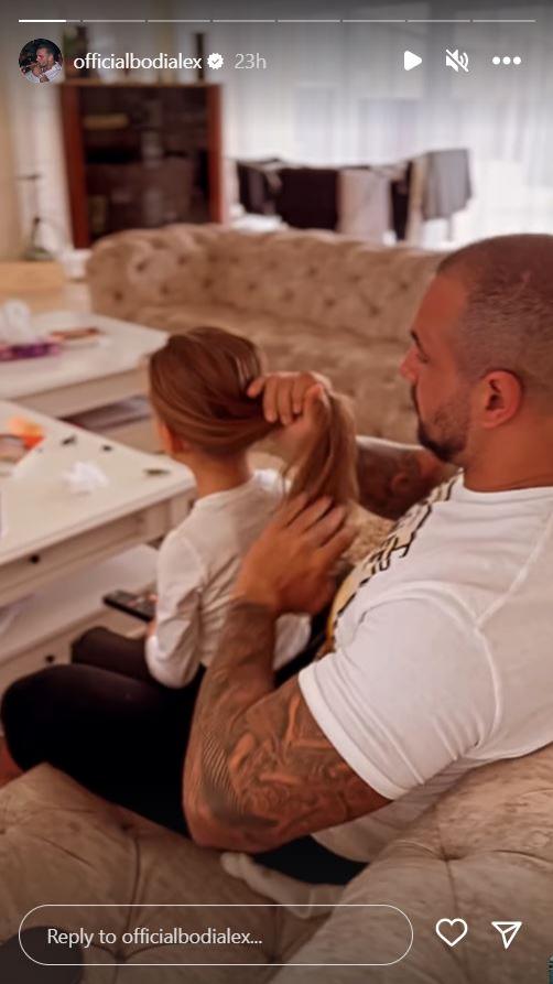 Familist convins, el s-a lăsat filmat alături de fiica lui cea mică, în intimitatea casei lor. În imaginile postate pe rețelele sociale, acesta poate fi văzut în timp ce îi aranjează părul micuței.