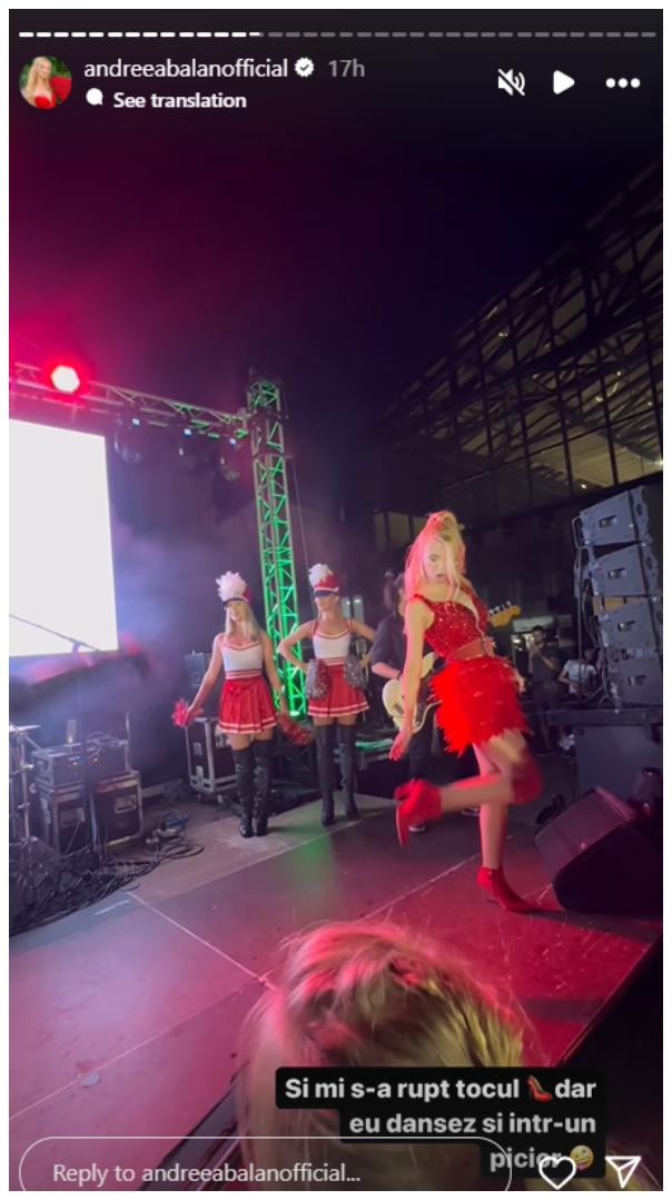 Andreea Bălan, incident în timpul unui concert: „Dansez și într-un picior”