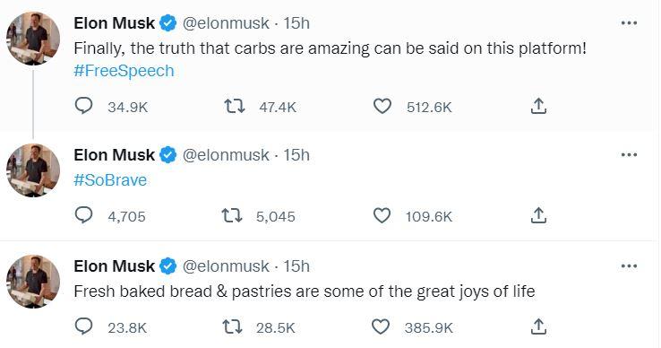 În timp ce se bucura de party, Elon Musk a făcut public, pe Twitter, un mesaj în care mărturisea că pâinea caldă și dulciurile sunt una dintre cele mai mari bucurii ale vieții.