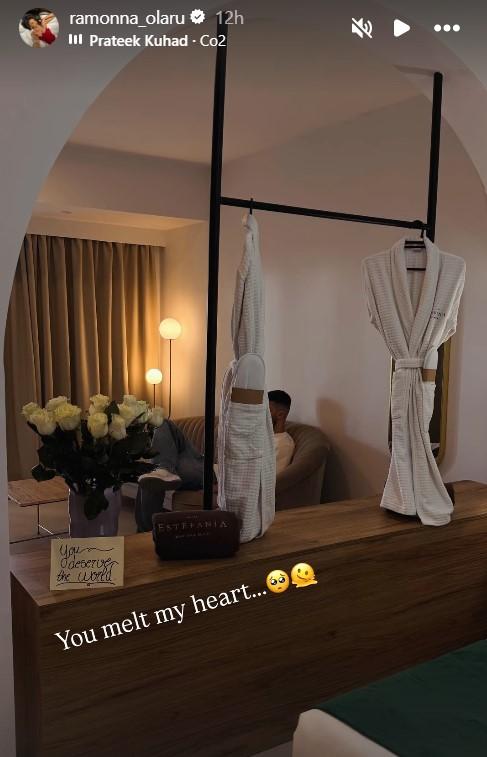 Ramona a postat câteva imagini și video-uri la Insta Story în care l-a surprins și pe Stefanos. Frumoasa prezentatoare TV a ales să posteze și o imagine cu o surpriză pe care iubitul ei i-a lăsat-o la cazare. Poza a atras imediat atenția fanilor.