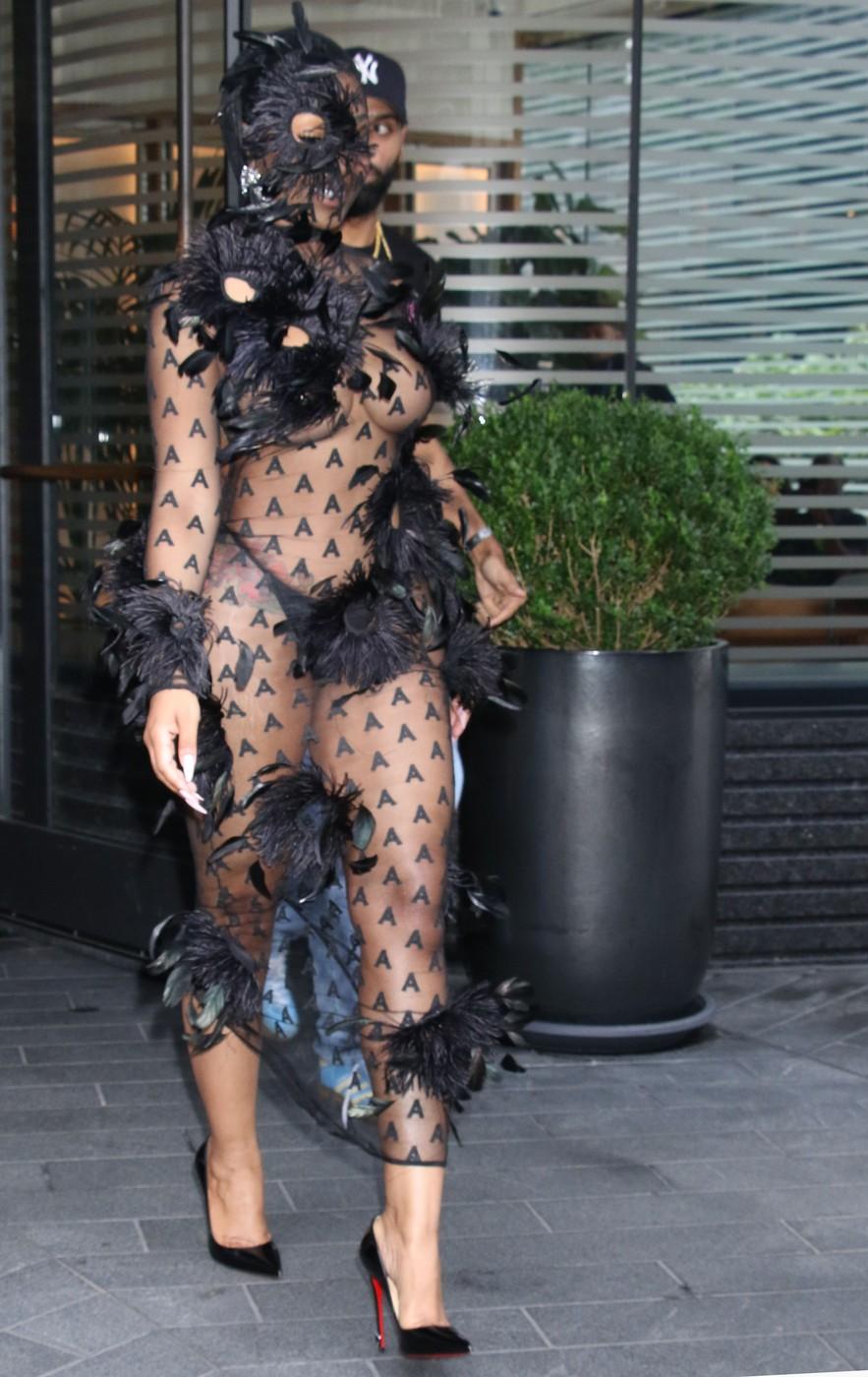 Caresha Romeka Brownlee, cunoscută pe numele de scenă Yung Miami, a făcut senzație la Săptămâna Modei de la New York. Vedeta americană a apărut public într-o rochie transparentă și decorată cu pene negre.