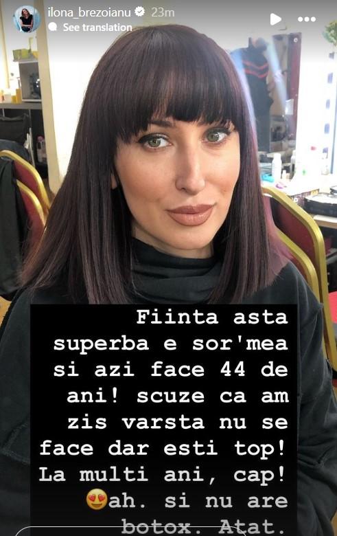 Ilona Brezoianu i-a transmis surorii sale un mesaj emoționant de ziua ei de naștere. Sora ei, Alina Brezoianu, seamănă leit cu frumoasa actriță, deși este cu 10 ani mai mare decât ea.