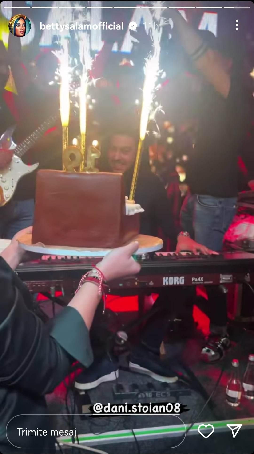 Dani Stoian a cântat pe tot parcursul serii în timp ce tatăl său făcea show pe scenă. La miezul nopții însă a venit o surpriză mare pentru el, un tort special pe care se aflau două lumânări care indică vârsta tânărului. Betty Salam a publicat mai multe imagini pe InstaStory de la evenimentul special.