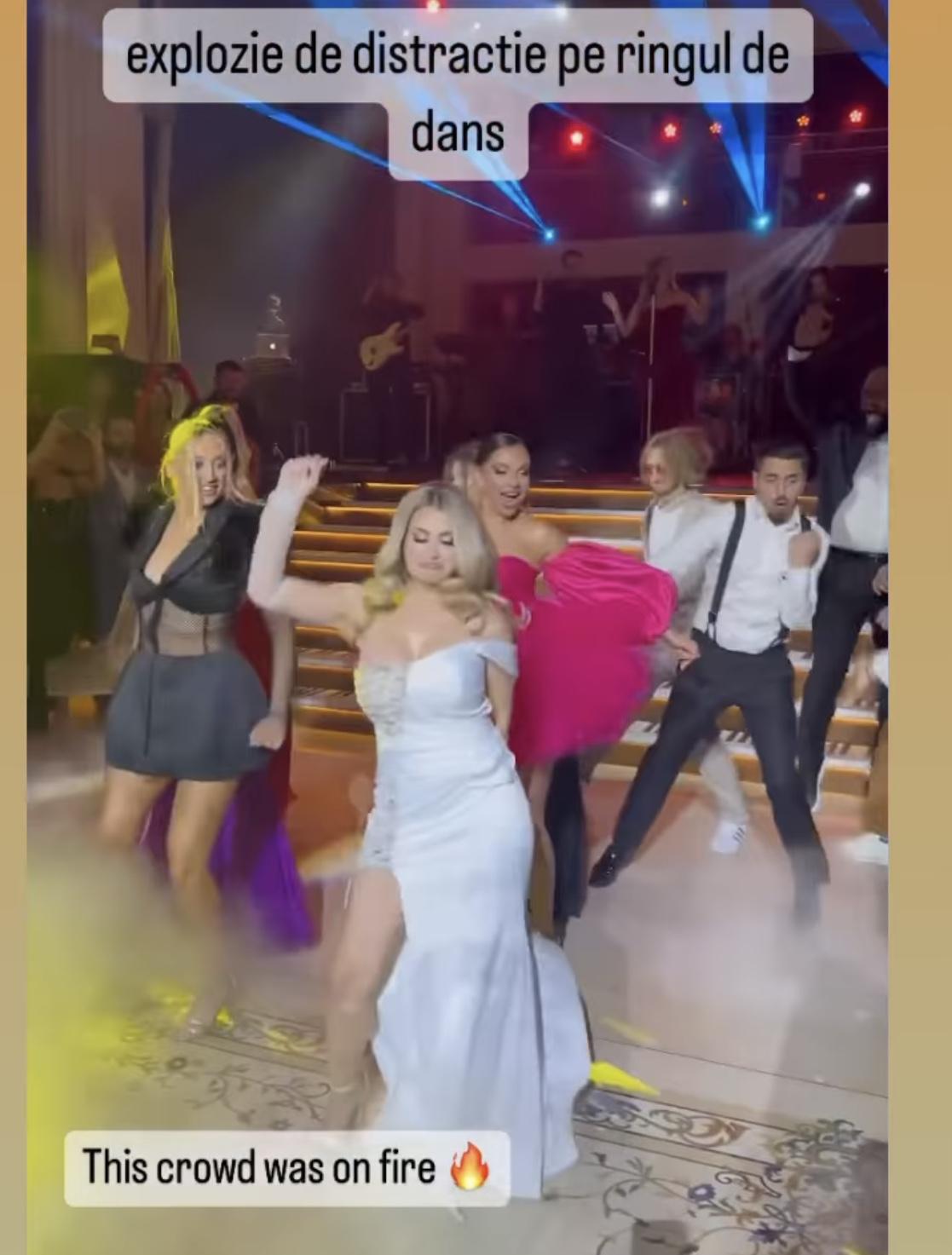 Întreaga sală de petrecere a fost decorată cu o mulțime de flori, iar invitații s-au putut delecta și cu un candy bar cu o mulțime de specialități. Atmosfera a fost întreținută de o trupă care a cântat live, iar invitaților nu le-a lipsit nimic. Imaginile de la fața locului au fost împărtășite și cu admiratorii din mediul online.