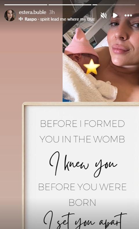 După ce a născut, Estera Buble a postat pe Insta Story prima imagine cu fiica ei și i-a transmis un mesaj extrem de emoționant.