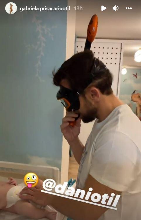 De curând, Gabriela l-a surprins pe prezentatorul de la Super Neatza cu Răzvan și Dani schimbând scutecele micuțului Luca, dar nu oricum, ci folosind o mască. Pentru a evita să simtă mirosul neplăcut la schimbarea scutecului, Dani Oțil a ales să folosească ochelarii de scuba diving.