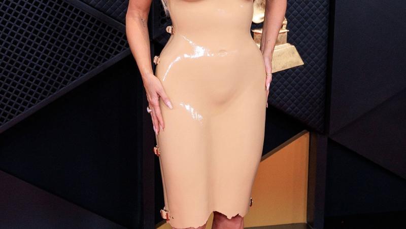 Vedeta nu ezită să atragă atenția cu ținutele ei nonconformiste, fiind mereu lipsită de inhibiții. De această dată, Heidi a ales să poarte o rochie de culoarea pielii, din latex, care arată exact ca un mulaj, fiind făcută după formele celebrului model.