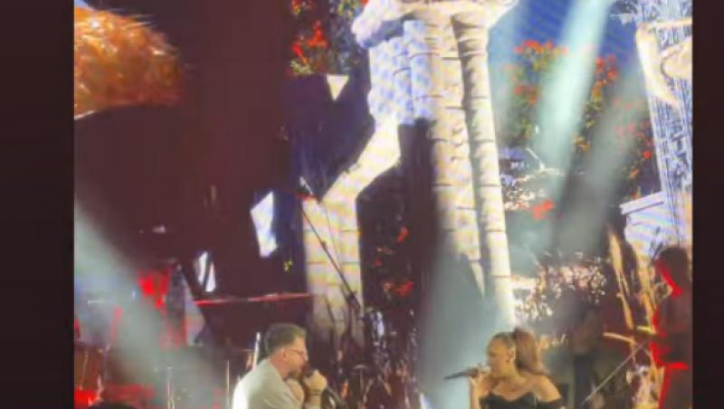 Ilona Brezoianu, apariție de senzație alături de Florin Ristei pe scena Sălii Palatului. Cei doi au avut un dialog savuros înainte de a cânta