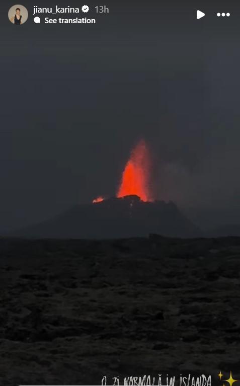Karina Jianu a vizitat în Islanda un vulcan care erupea, apoi a făcut cățărări pe ghețari, a fost la epava unui avion, a văzut cascade superbe și a vizitat gheizere. Vacanța din Islanda i-a adus multă bucurie actriței, fiind extrem de încântată de tot ceea ce a descoperit.