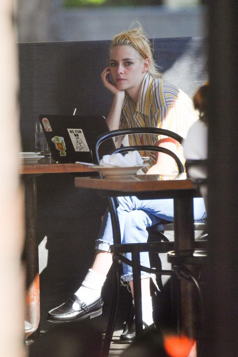 Actrița s-a îmbrăcat simplu, normal, lejer, pentru o plimbare cu o prietenă bună de-a ei cu care a luat și masa în oraș. A purtat o pereche de blugi și o cămașă în dungi, de culoare galbenă.