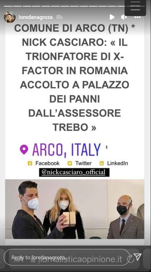 „Cântărețul în vârstă de 32 de ani din Bolzano, deja cunoscut publicului pentru participarea la cea de-a treisprezecea ediție a „Amici” în 2014. Nick Casciaro a fost însoțit de Loredana Groza, mentorul său la X-Factor, cântăreață-compozitoare pop, actriță, dansatoare și persoană publică extrem de cunoscută a televiziunii românești”, se arată într-un articol de presă din Italia, potrivit ladigetto.it.
