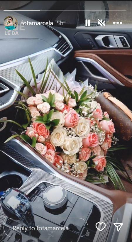 Recent, Marcela Fota a publicat o nouă imagine pe story, pe contul de Instagram. Aceasta le-a arătat fanilor un superb buchet de flori pe care îl avea pus pe scaunul din dreapta al mașinii alături de o geantă de brand.