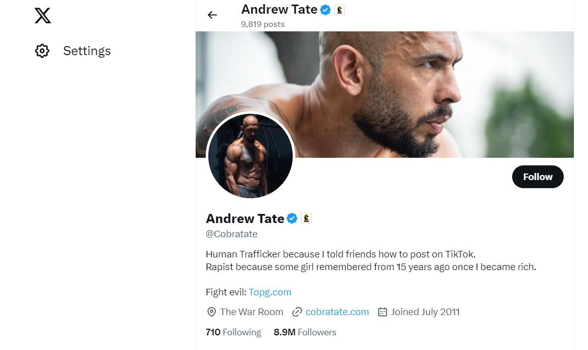 “Traficant de persoane pentru că le-am spus prietenilor mei cum să facă postări pe TikTok. Violator pentru că o fată și-a amintit de acum 15 ani doar pentru că am ajuns bogat”, a scris Andrew Tate pe X, fostul Twitter.