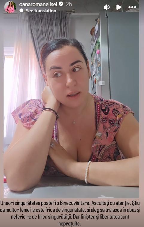 “Sunt foarte fericită și liniștită deocamdată cu singurătatea mea pentru că mă bucur de momente de liniște, mă bucur de momente cu mine”, a mai spus Oana Roman pe Instagram.