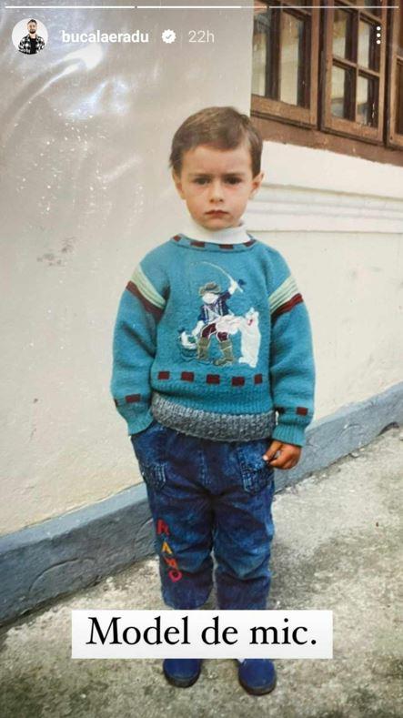 Și în mediul online unde postează adesea, el preferă să se laude cu proiectele sale extrem de amuzante, dar recent a împărtășit o imagine rară cu el. Radu Bucălae a postat pe contul său de Instagram o fotografie cu el din copilăria în care pare un băiețel extrem de serios.