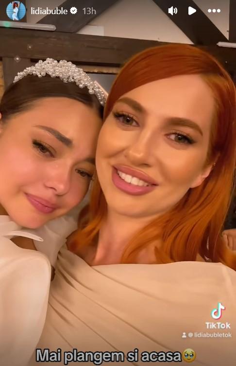 “Mă pregătesc să pup mireasa. E ruptă de plâns. Uitați trădătoarea care m-a trădat că a zis că nu se căsătorește. Acuma nu mai plânge. Nu mai ești mezina. Acuma eu am rămas. Hai Lori, că de-acuma astea sunt lacrimi de fericire. Numai de bucurie să plângi. Ai fost cea mai frumoasă mireasă și ai avut o petrecere minunată. Să ai parte de o viață binecuvântată, cu lacrimi numai de fericire și încă o dată repet și insist – să nu fiți cuminți ca să aveți amintiri frumoase. Ai înțeles domnu mire? ”,a spus Lidia Buble într-un video pe TikTok.