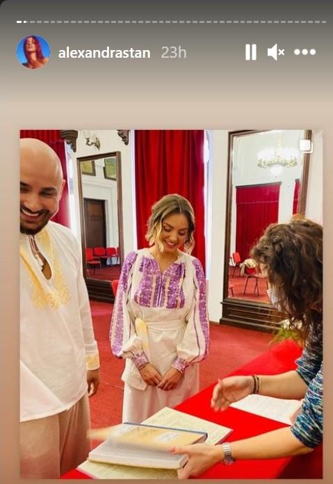 De curând, Alexandra Stan a publicat pe Instagram mai multe imagini din momentul în care a făcut marele pas. Postările au atras imediat atenția internauților, însă ținutele tradiționale ale celor doi au întors toate privirile.