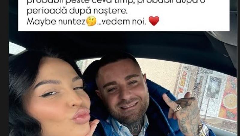 Cununia religioasă, de asemenea este foarte importantă și va avea loc în viitorul apropiat. Nunta aia mare cu toată lumea și toți oamenii dragi, așa cum am zis în story-ul anterior, probabil peste ceva timp, probabil după o perioadă după naștere. Maybe nuntez… vedem noi!”
