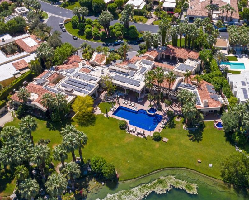 Vila cu șase dormitoare din cadrul The Vintage Club, din apropierea Indian Wells, are valoarea de 12,5 milioane de dolari și este cumva ascunsă de vegetația din jur.