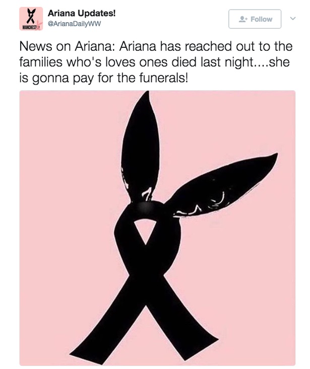 Anunțul ar fi fost făcut pe contul de Twitter, fanii artistei salutând cu bucurie decizia artistei. Ariana Grande s-a întors în orașul natal, Boca Raton din Florida, în mai puțin de 24 de ore după explozia de la Arena din Manchester.